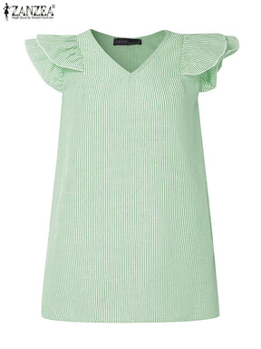 Women Striped Sleeveless V-Neck Top - XL / green is backordered and will ship as soon as it is back in stock.