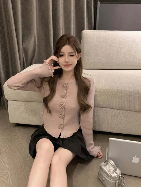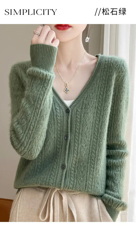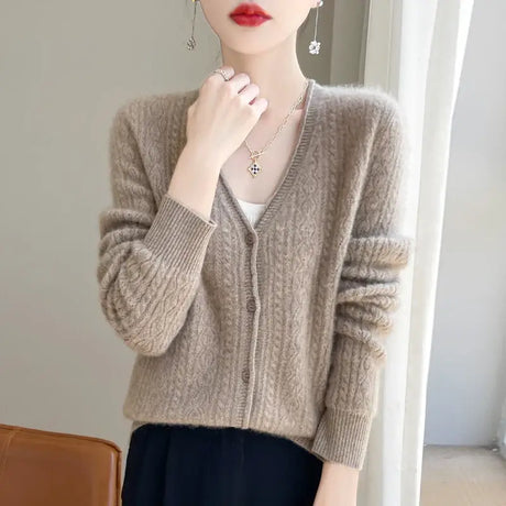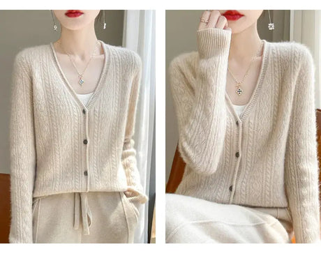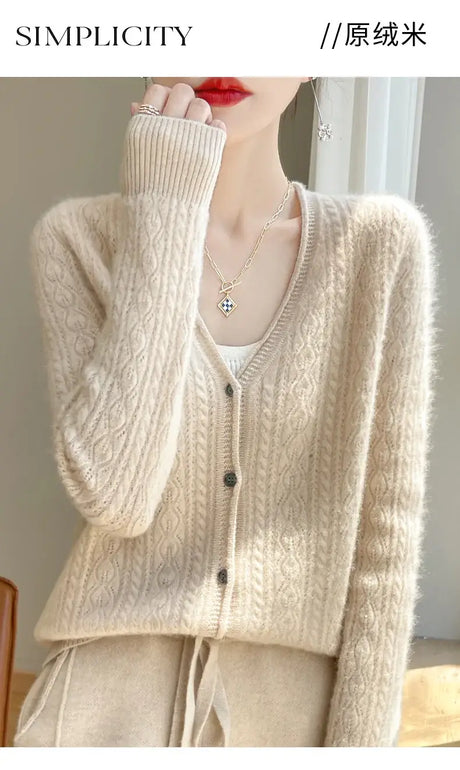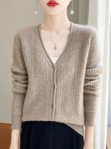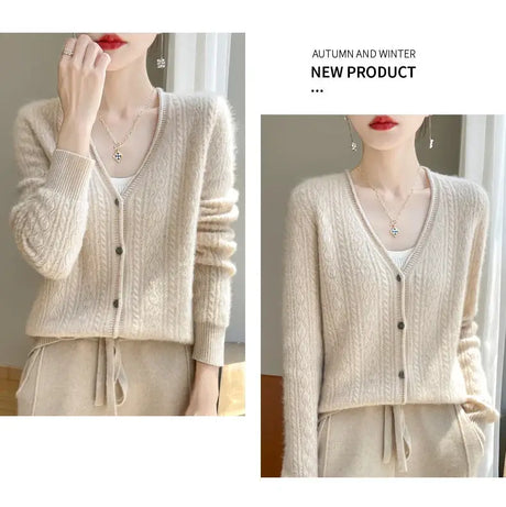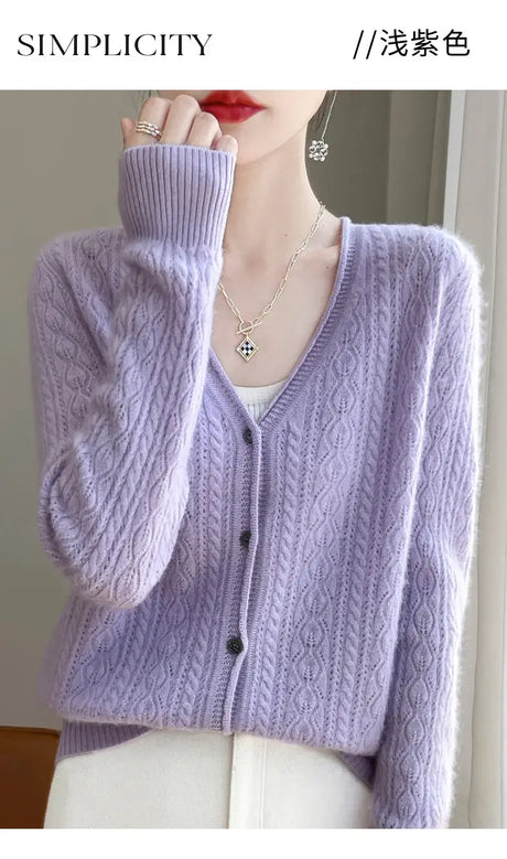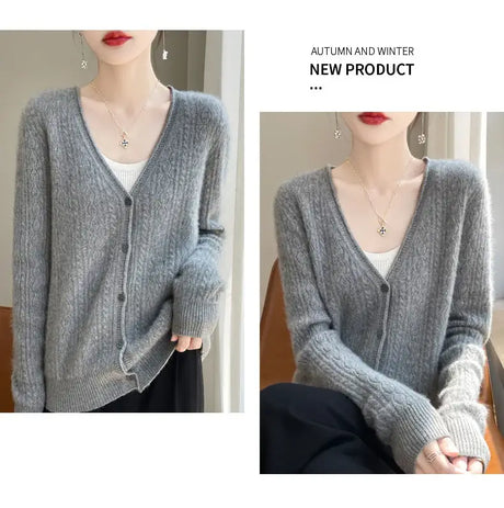 Women Mink Cashmere Knit Cardigan
