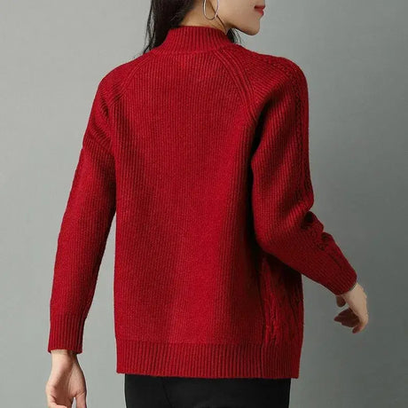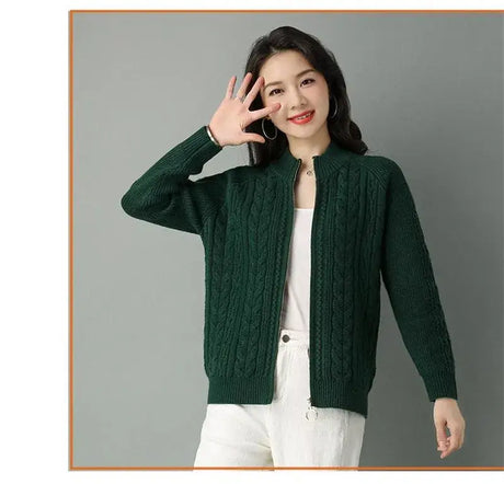 Women Zipper High Collar Knit Cardigan