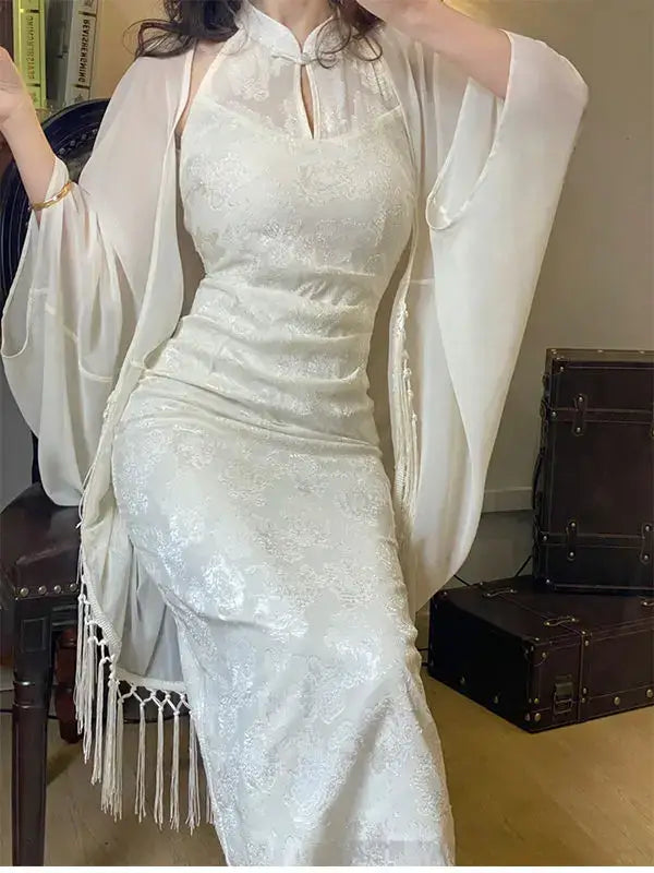 Women Qipao Two Piece Dress Set - cardigan dress suit / S is backordered and will ship as soon as it is back in stock.