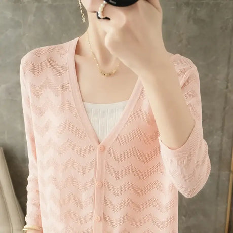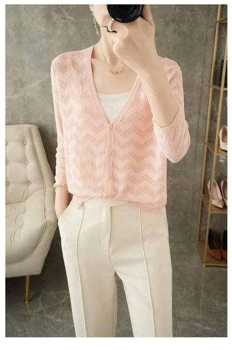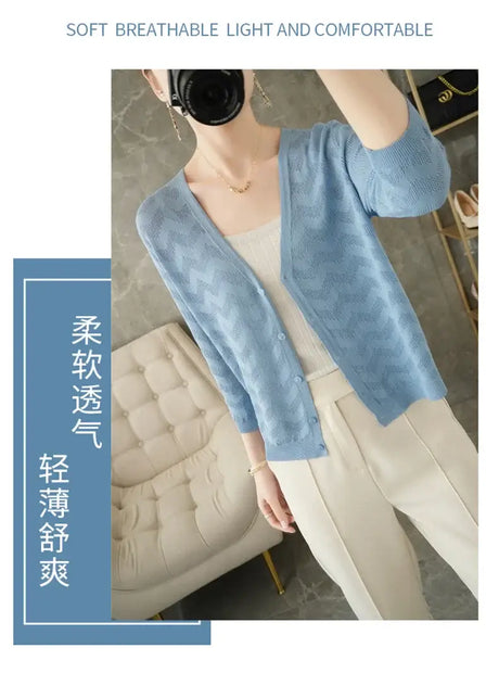 Women Ice Silk Mesh Knit Cardigan 5XL