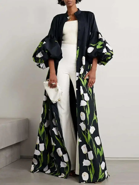 Women Floral Print Trench Coat Dress