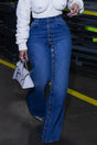 Women Plus Size Button Fly Wide Leg Jeans - Blue / 3XL is backordered and will ship as soon as it is back in stock.
