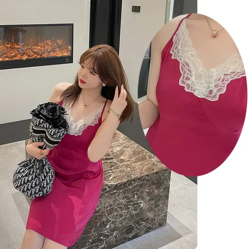 Women Plus Size Lace Splicing Nightdress Loose Pajama