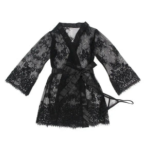 Women Plus Size White Lace Robe Long Sleeve Nightdress