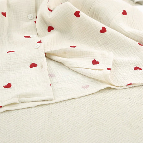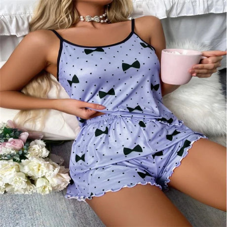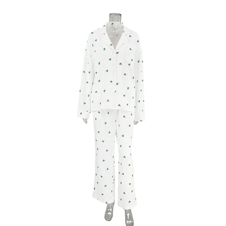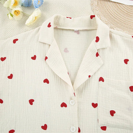 Women Heart Print Ice Silk Pajama Set