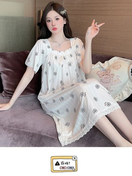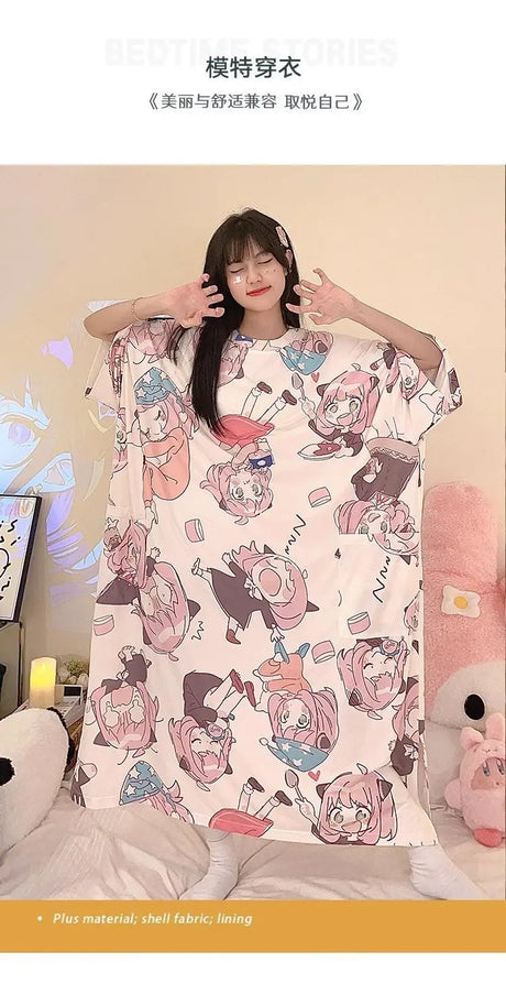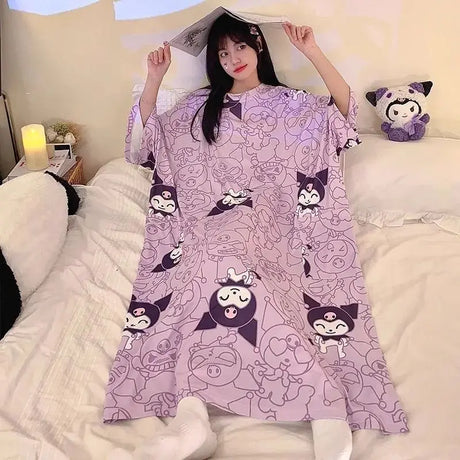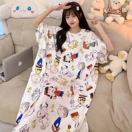 Women Cartoon Print Long Nightgown