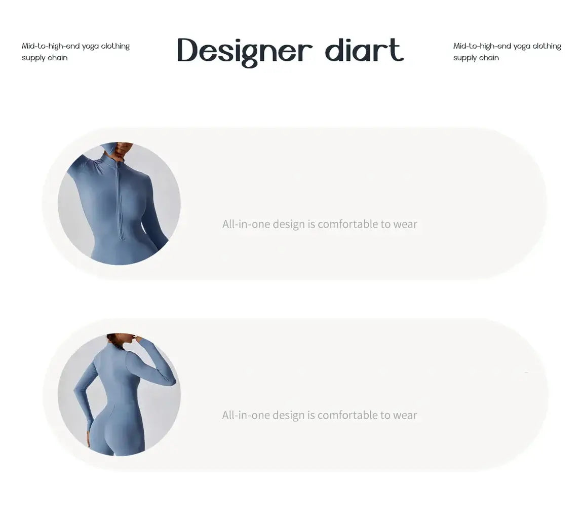 Women Fitness Zipper Long Sleeve Jumpsuit