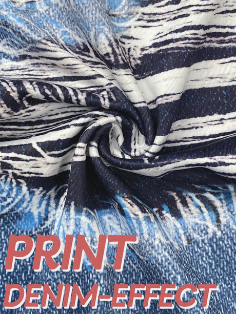 Women Imitation Denim Ripped Print Leggings