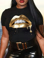 Women Lips Print T-Shirt Short Sleeve Casual Tee