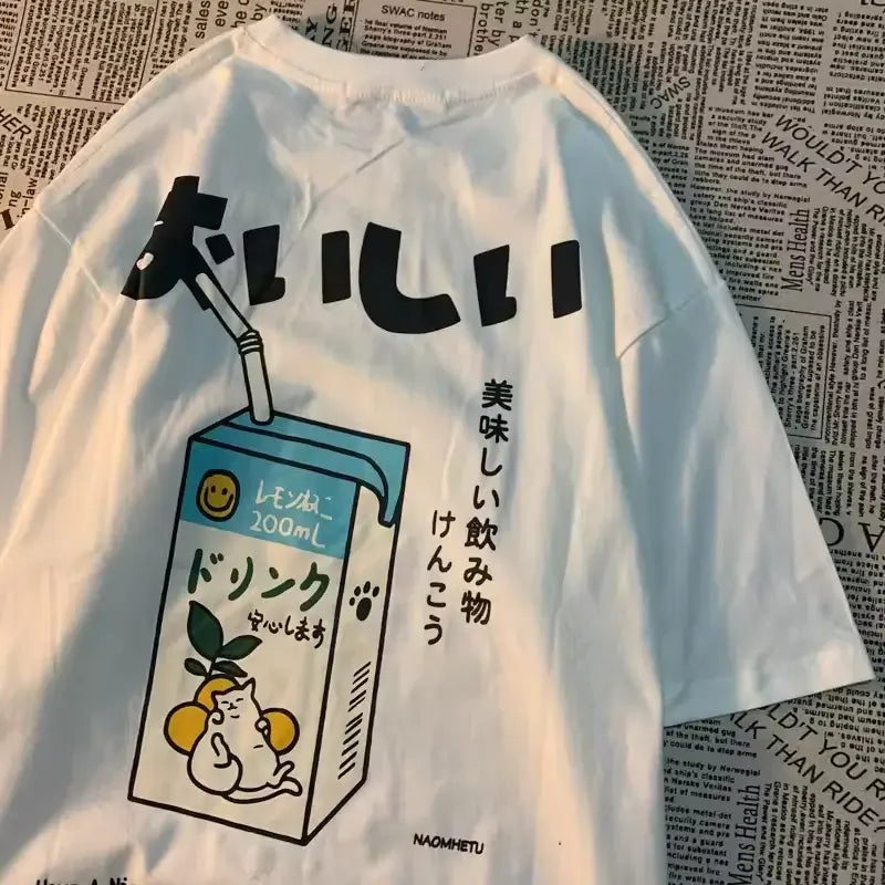 Women Plus Size Red Cat Print Short Sleeve T-Shirt
