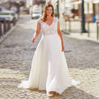 Women Plus Size Backless Chiffon V-Neck Wedding Dress