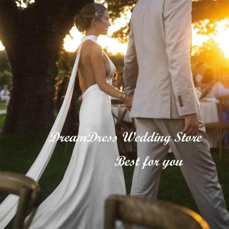 Women Mermaid Crepe Halter Wedding Dress Backless
