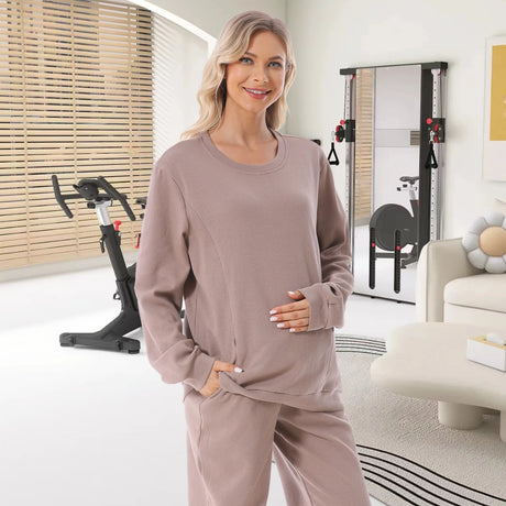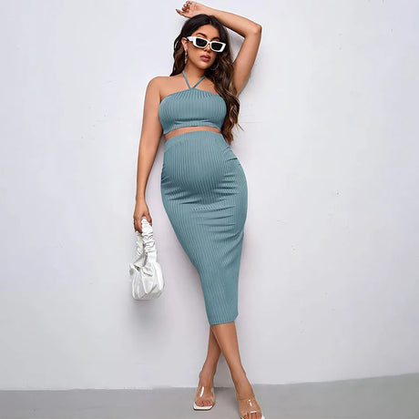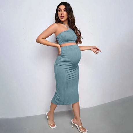 Knitted Ribbed Maternity Set with Adjustable Belt