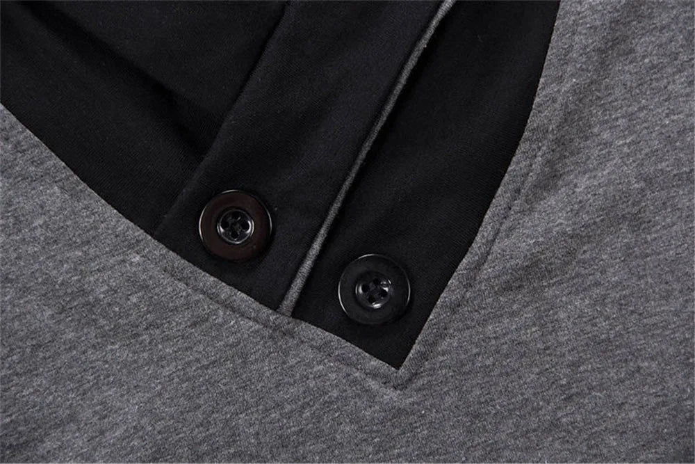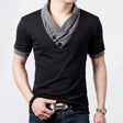 Men's Plus Size Patchwork V Neck T-Shirt – Black