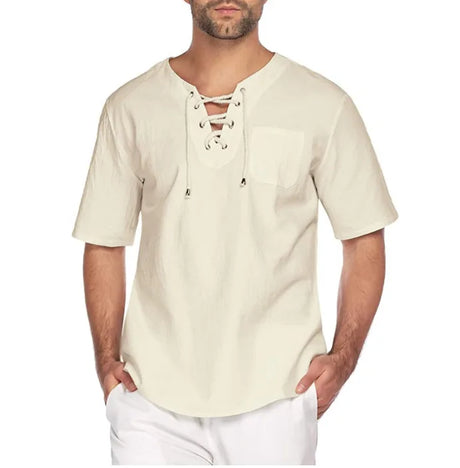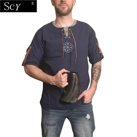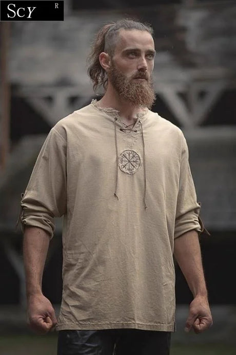 Men's Plus Size Viking Embroidered Shirt – Lace-Up