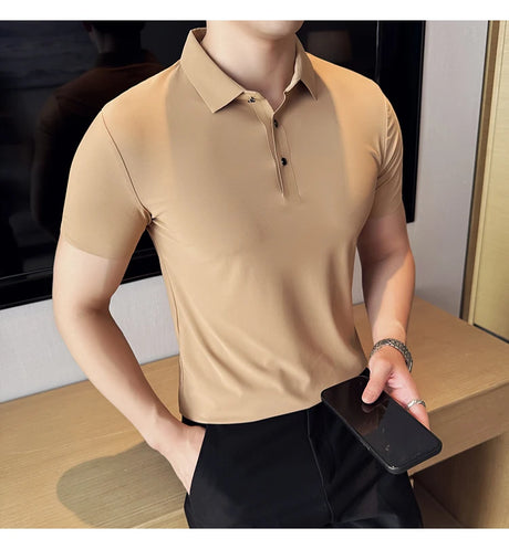 Men Ice Silk Polo Shirt Brown Top