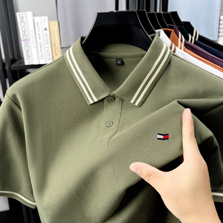 Men Luxury Silk Cotton Polo Shirt