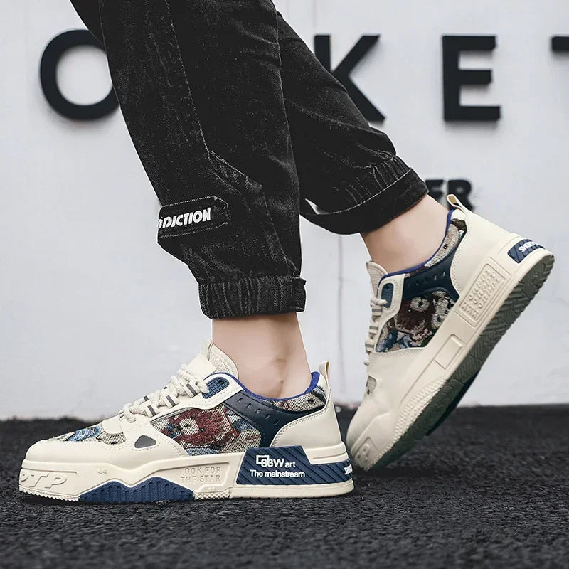 Men Breathable White Skateboard Sneakers