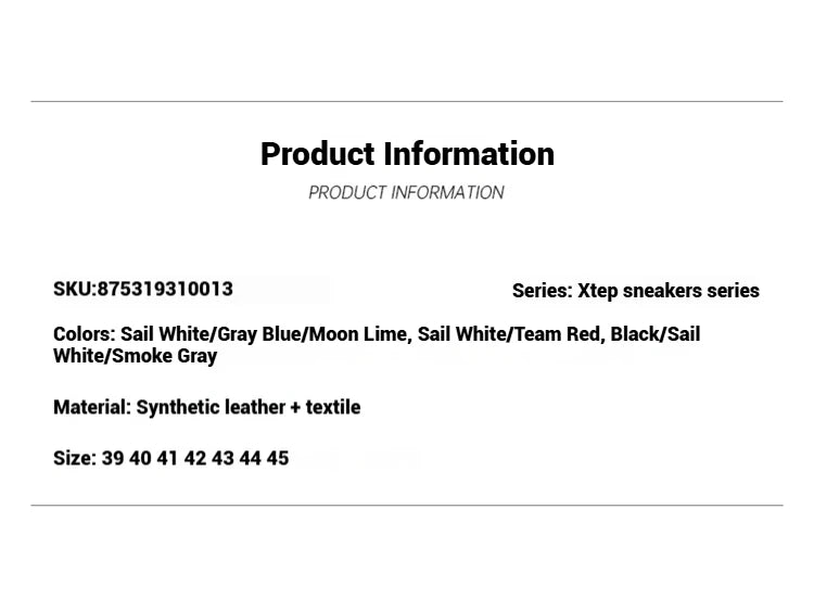 Xtep Men Thick Sole Skateboard Sneakers