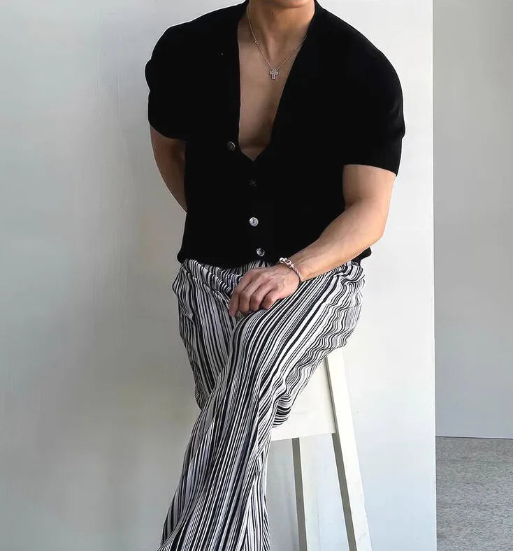 Men Short Sleeve Cardigan Knit - black / XL is backordered and will ship as soon as it is back in stock.