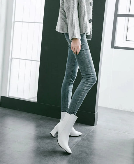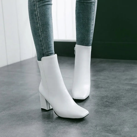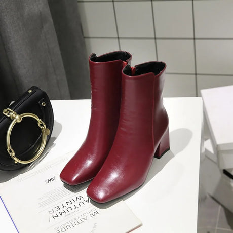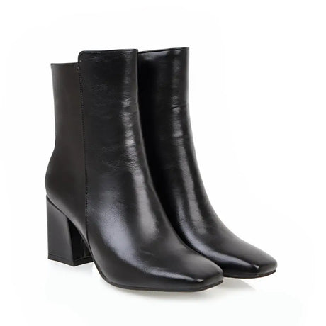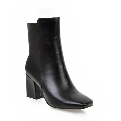 Women Side Zipper Mid-Heel Ankle Boots – Winter Casual Shoes