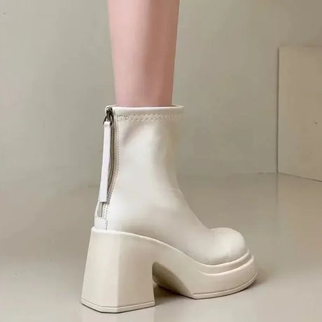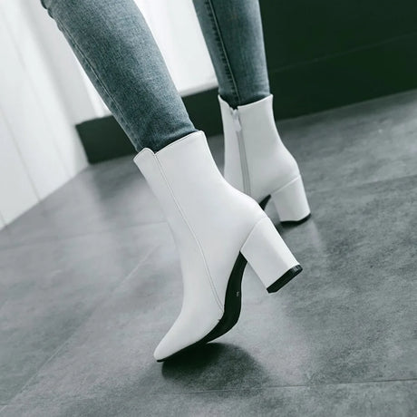 Women Pointed Toe Zipper Ankle Boots – Autumn High Heel Short Booties