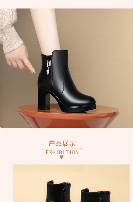 Women Warm Wool High Heel Ankle Boots – Winter Fashion