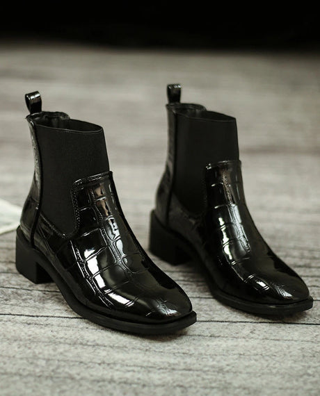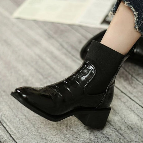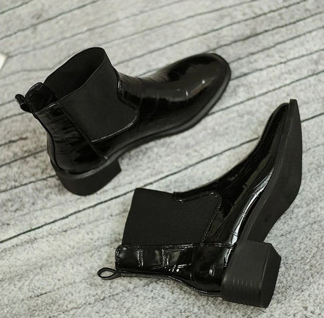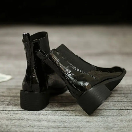Women Patent Leather Platform Ankle Boots – High Heel Autumn Winter