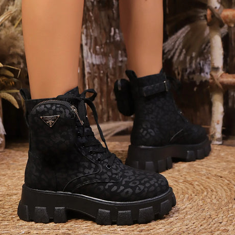 Women Leopard Print Ankle Boots – Winter High Heel Platform Shoes