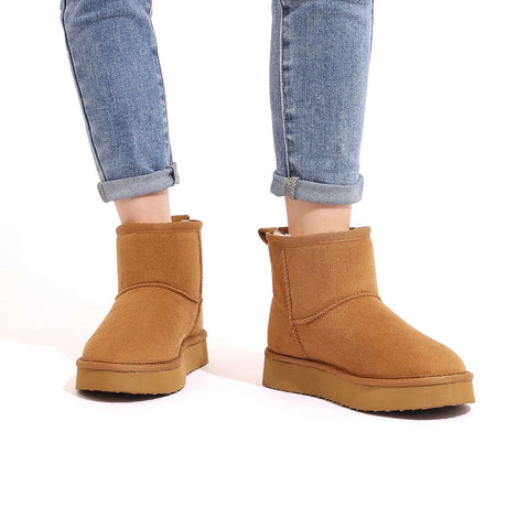 Women Snow Ankle Boots – Anti-Slip Plush Leather Winter Footwear