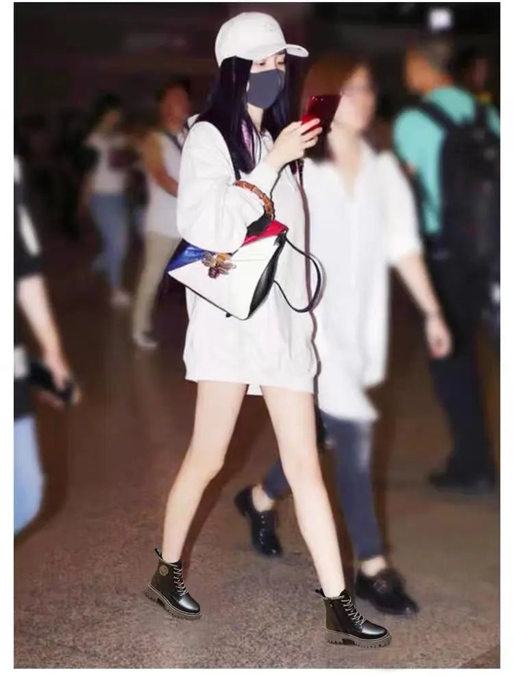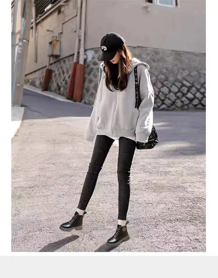 Women Motorcycle Style Ankle Boots – Thick Sole Leather Plus Velvet