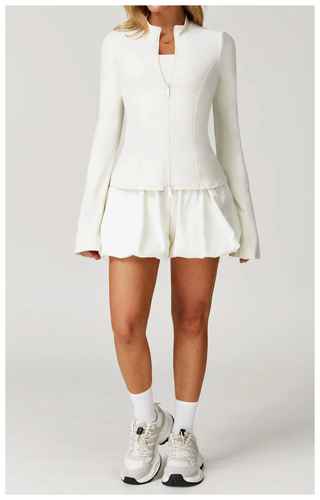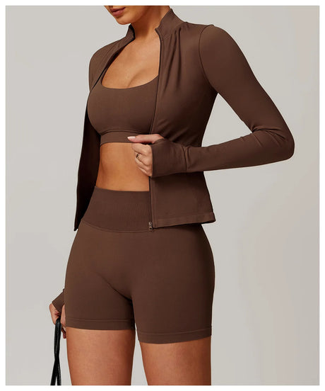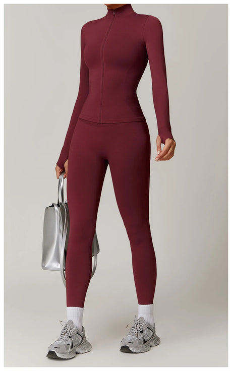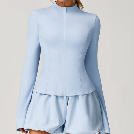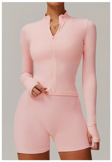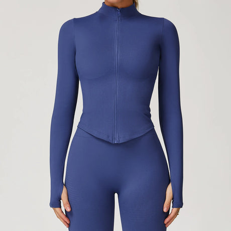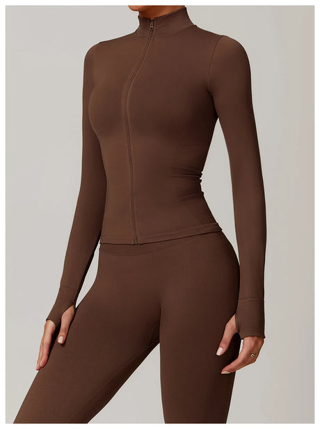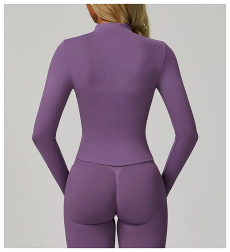 Women's Zip Long Sleeve Yoga Jacket – Slim Fit Gym Training Top