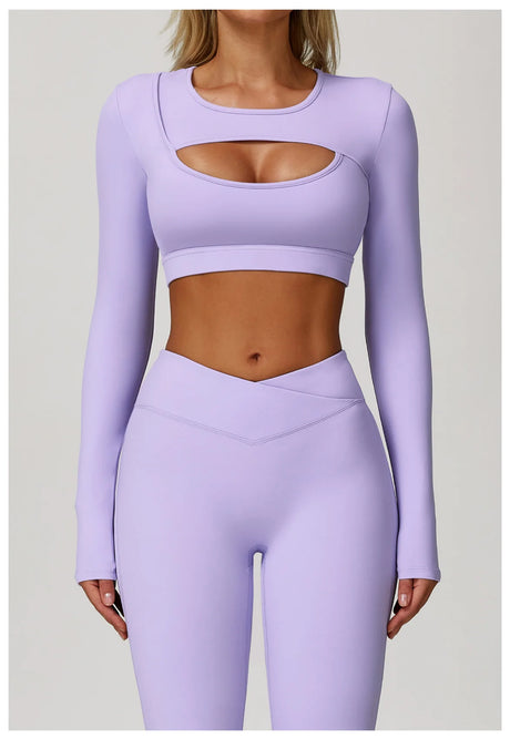 Women's Hollow Out Long Sleeve Yoga Shirt – Gym Workout Running Top