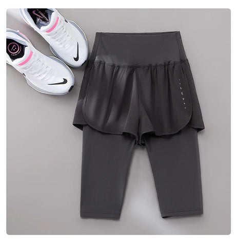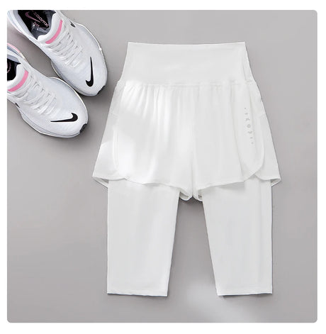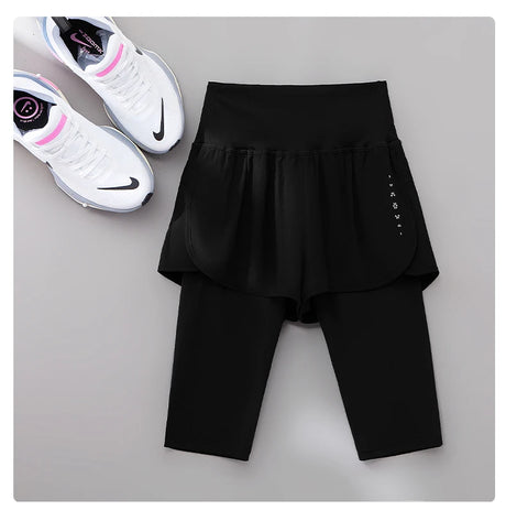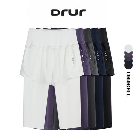 DRUR Knee-Length 2-in-1 Women's Yoga Shorts – High Waist Summer Gym Pants