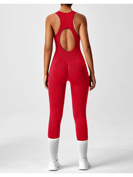 Seamless Peach Booty One-Piece Yoga Bodysuit – V-Back Tummy Control