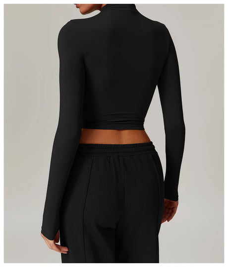 Women's Standing Collar Long Sleeve Yoga Jacket – Summer Training Top