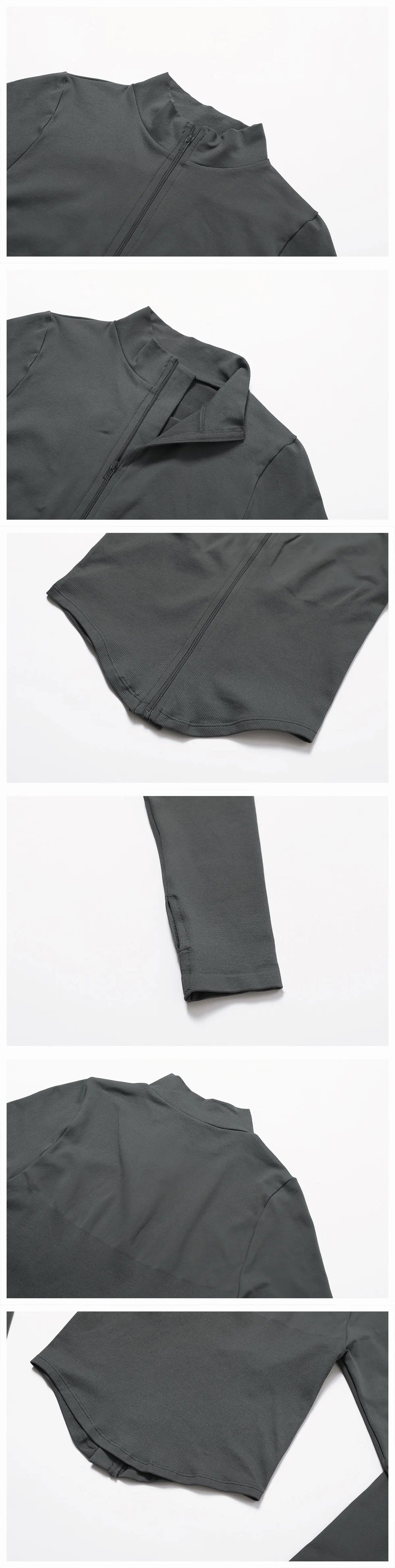Ribbed Women's Yoga Jacket – Long Sleeve Standing Collar Fitness Top