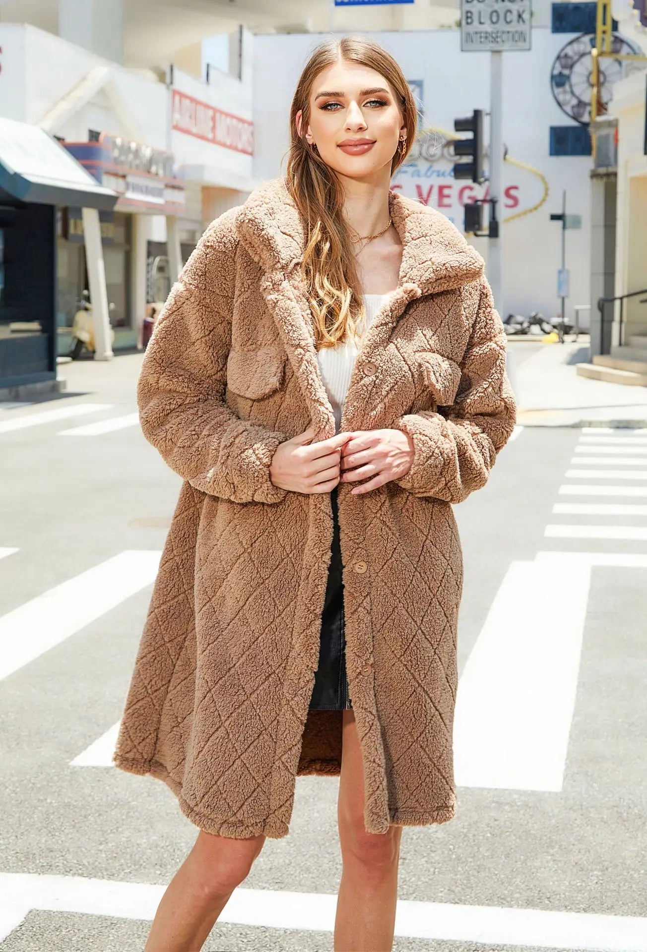 FairyShely Brown Puff Long Women's Winter Jacket – Plush Warm Coat