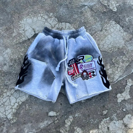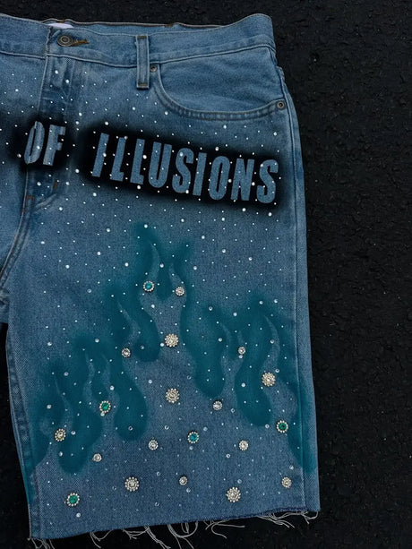 FlameShorts™ – Rhinestone Baggy Shorts (Y2K Flame Street Look)