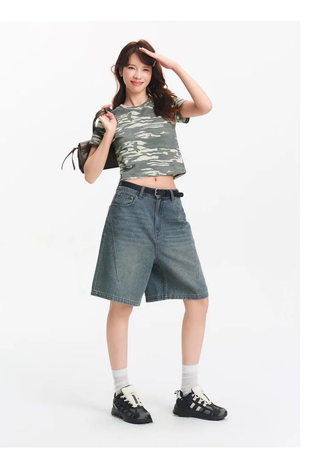High Waist A-Line Denim Shorts for Women | Y2K Fashion