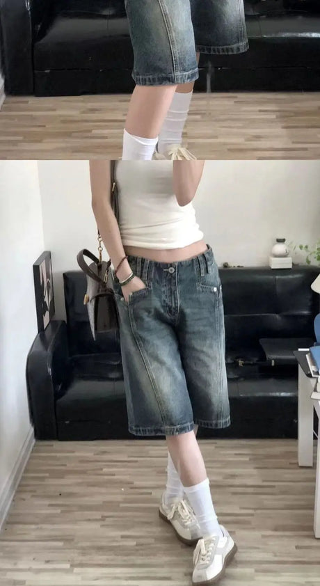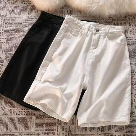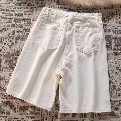 Women's Vintage White Denim Shorts - Y2K Harajuku Style