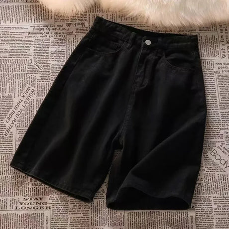FadeMid™ – Black Retro Loose Shorts (High Waist, Y2K Mid-Length)
