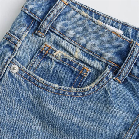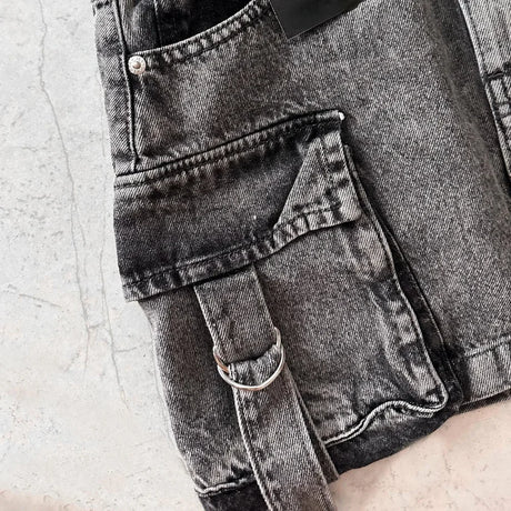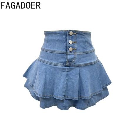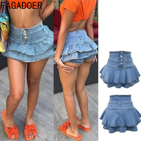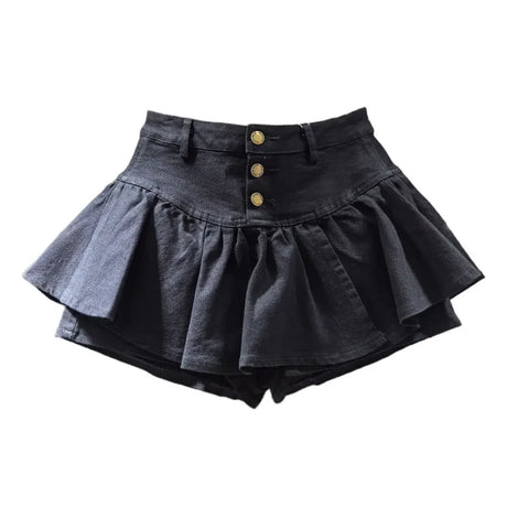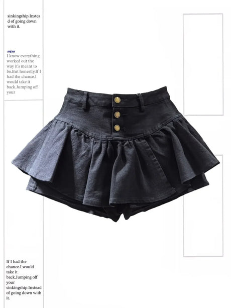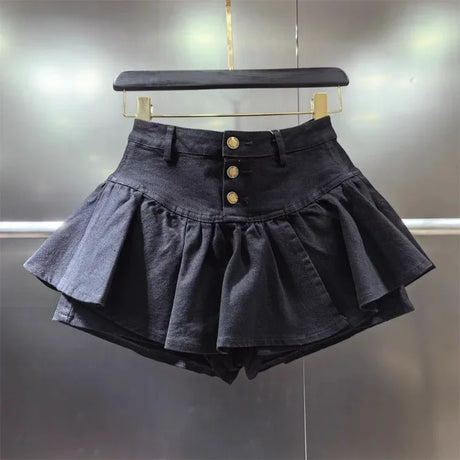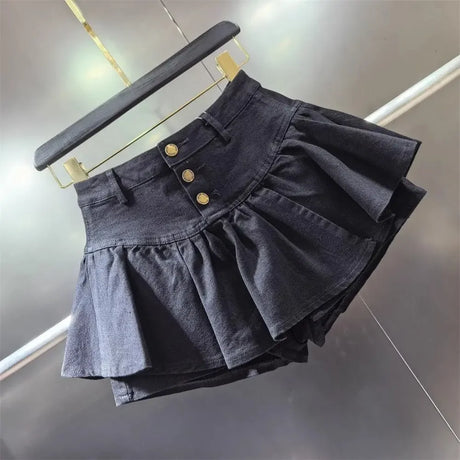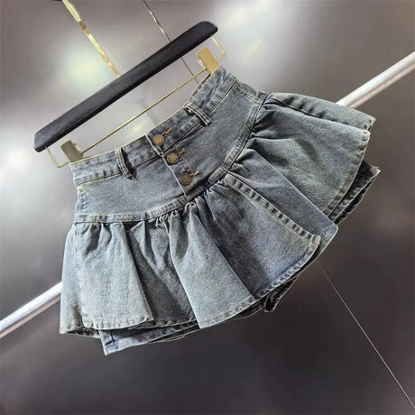 PatchSkirt™ – Ruched Pleated Denim Skirt (Streetwear, Button Detail)