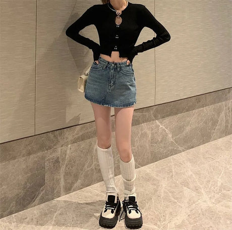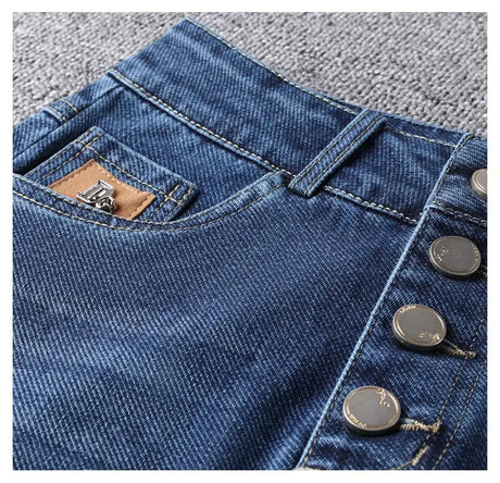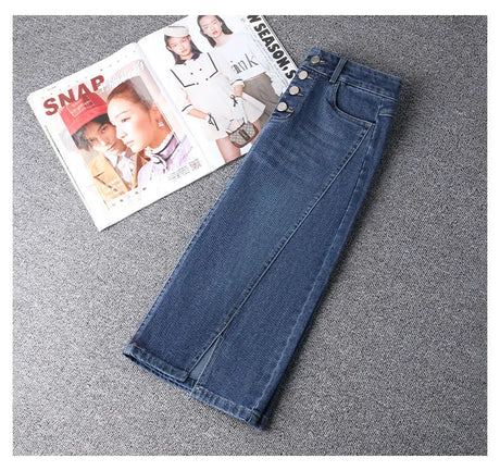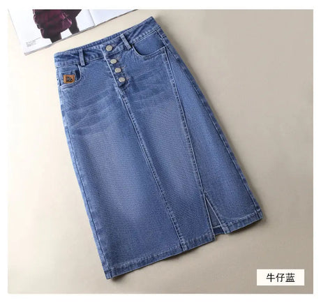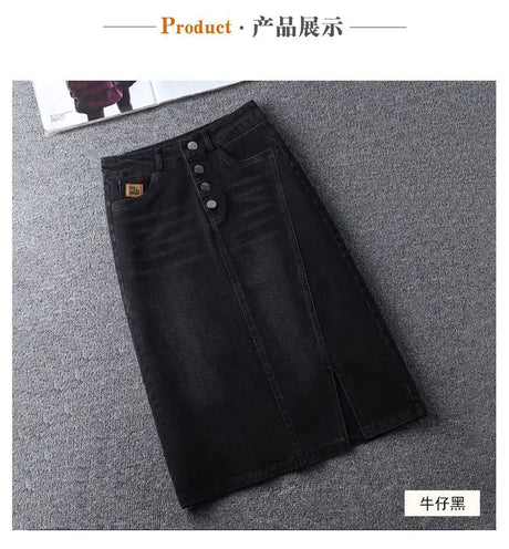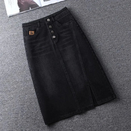 SpiceShape™ – Button Bodycon Denim Skirt (Autumn/Winter Streetwear)