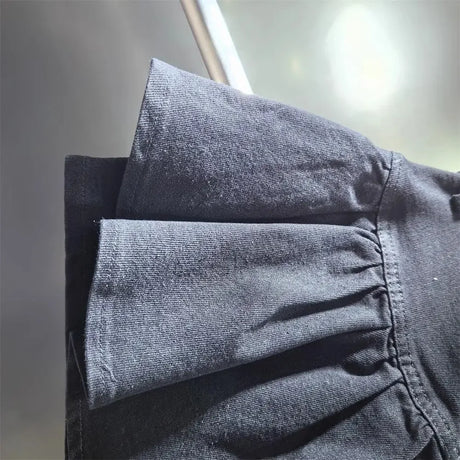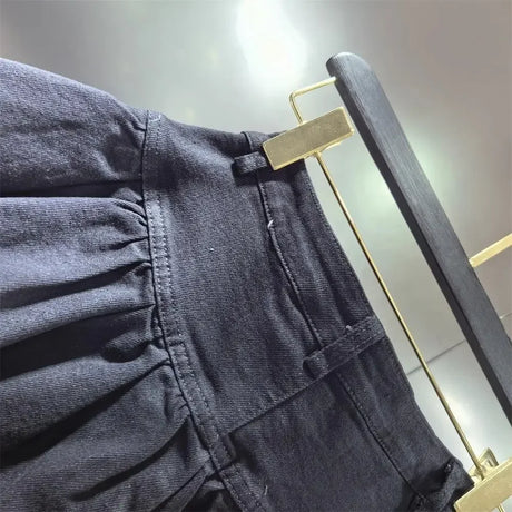 PuffyBelt™ – Puffy Layered Denim Skirt (Black A-line, High Waist)