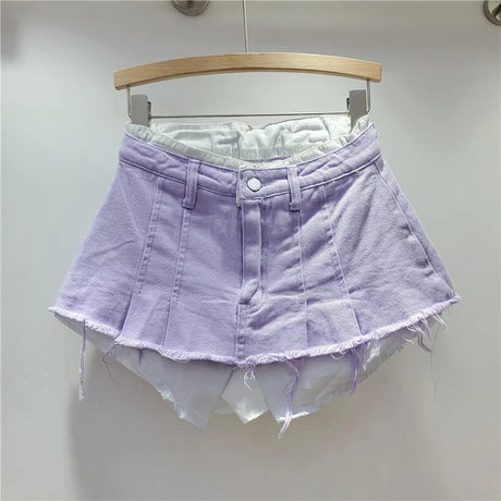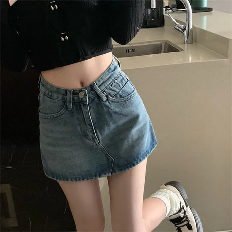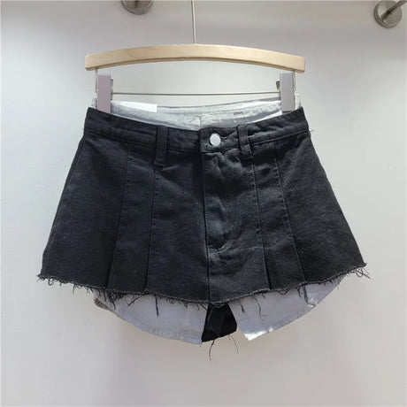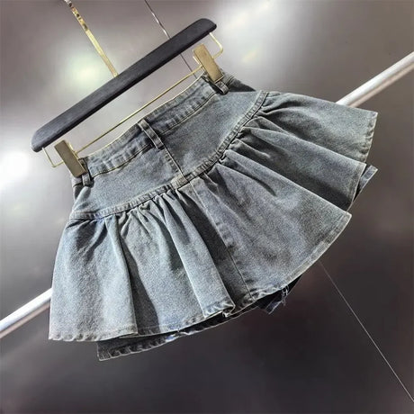 LaceUpMini™ – Irregular Korean Skirt (2025 Lace-Up Denim A-line Style)