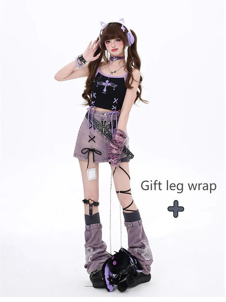 LaceVibe™ – Purple Lace-Up Mini Skirt (Harajuku Aesthetic Skirt)