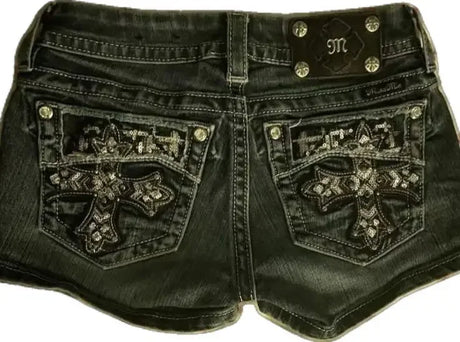 SweetGoth™ – Embroidered Y2K Mini Skirt (Gothic Low Waist Shorts)