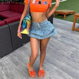 PatchSkirt™ – Ruched Pleated Denim Skirt (Streetwear, Button Detail)